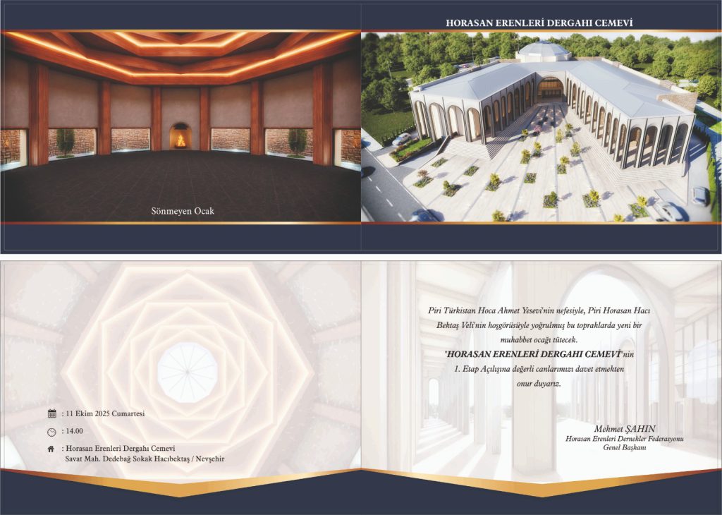 Horasan Erenleri Federasyonu tarafından Nevşehir ili Hacıbektaş ilçesinde 1. Etap açılışı gerçekleştirilen Horasan Erenleri Cemevi’nin açılış programına, yönetim kurulu olarak katılım sağlanmıştır.